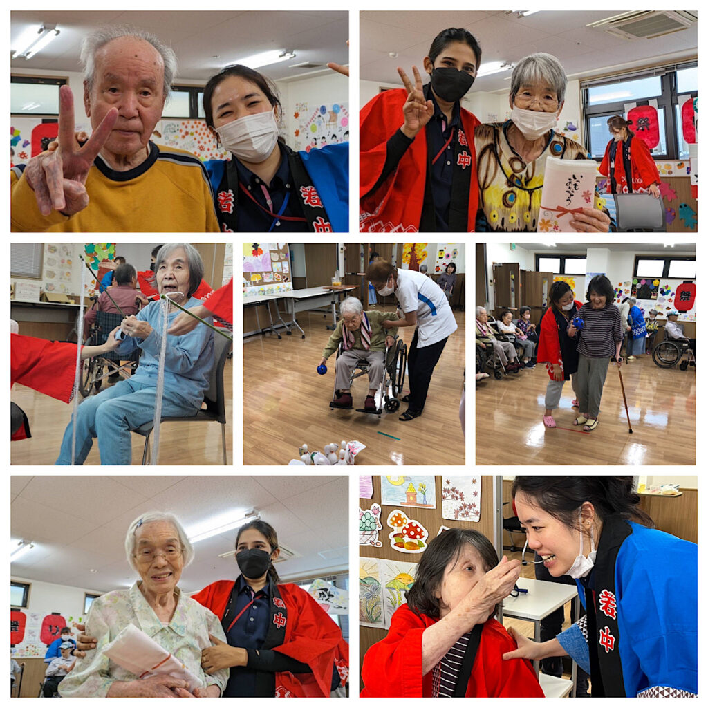 ミニゲームを熱中されたり、露店でジュースや職員手作りの芋まんじゅうを食べられたりと思い思いの時間を過ごされました。