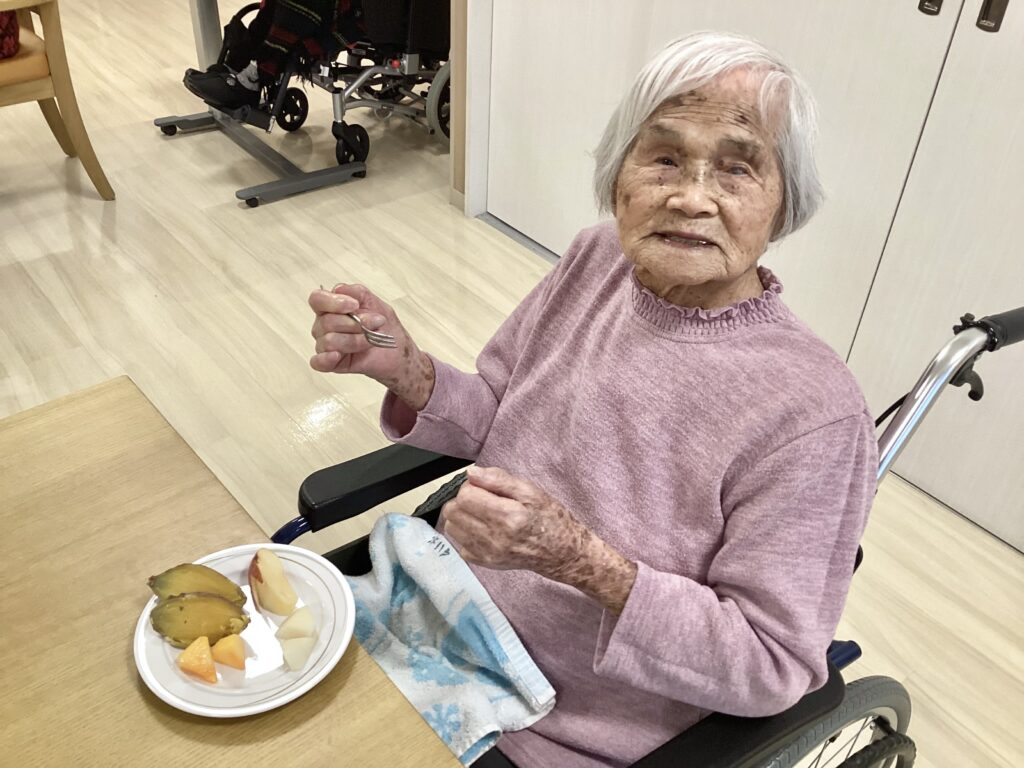 10月27日(金)に、すないの家千種では秋の味覚祭としてフルーツバイキングを行いました。リンゴや柿や梨やサツマイモを提供して皆さんで食べていただきました。