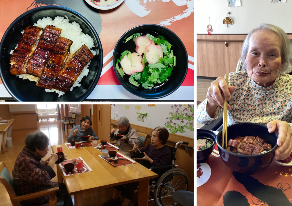 久しぶりにうなぎを食べられて嬉しい!との声が多く聞こえました。入居者様、利用者様大満足♪職員も一緒にいただきました
