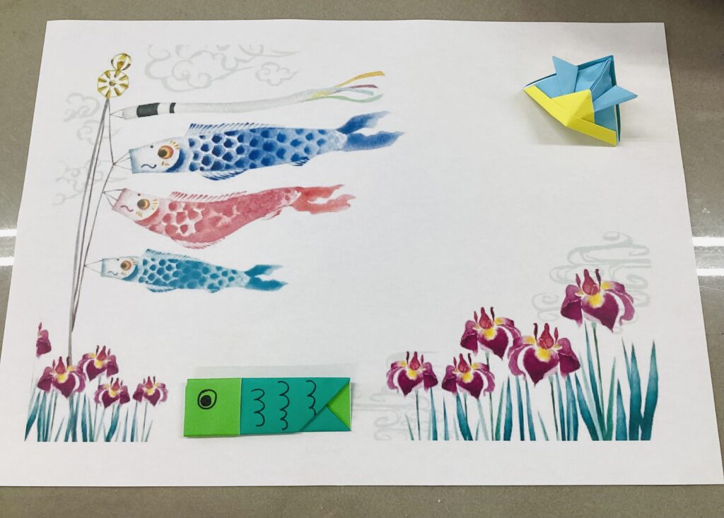 5月5日のこどもの日の行事として、人間鯉のぼりやかぶとを作成しました。昼食時には、ランチョンマットや箸いれを作成し雰囲気を盛り上げました。その後は、大好きなお風呂に菖蒲をいれて体の芯から温まり、気持ちよさそうにされていました。楽しいこどもの日を過ごすことができました。
