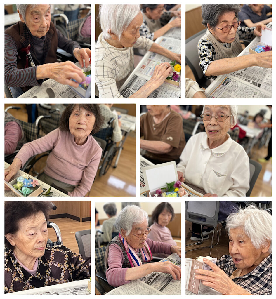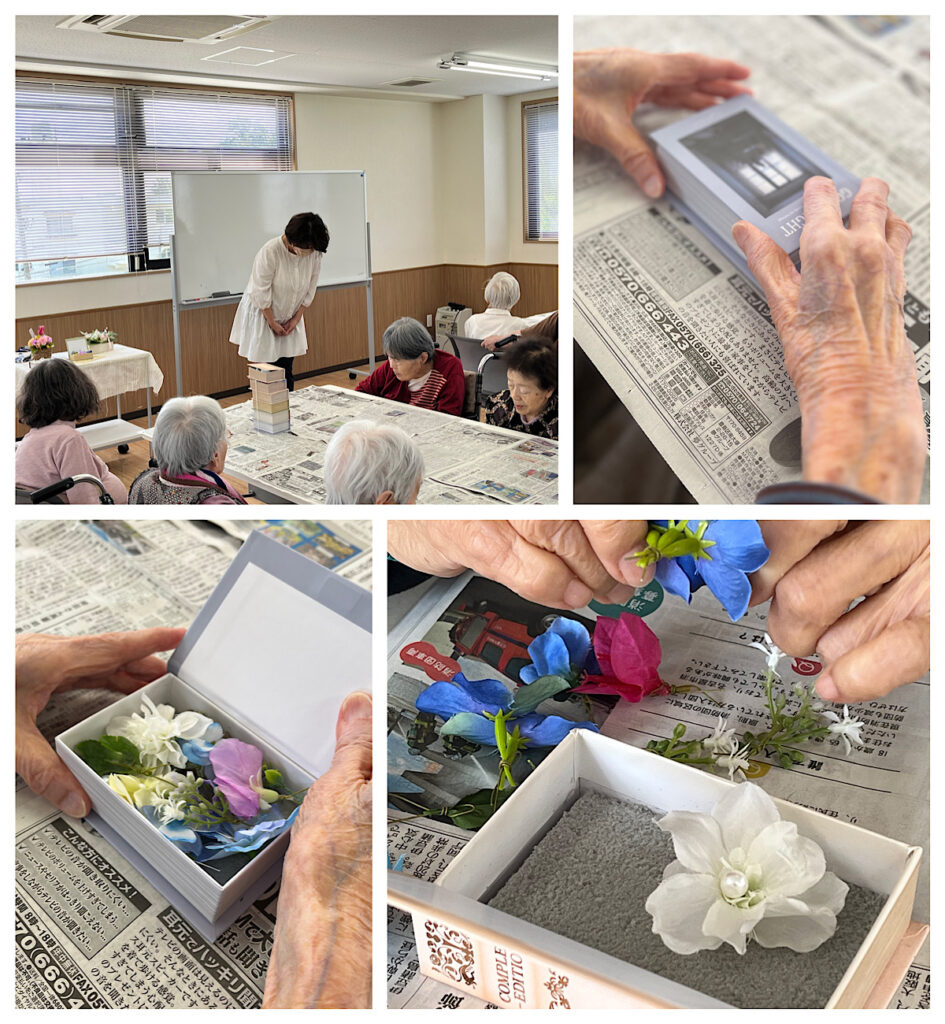 すないの家尾張旭ではBrillanteさまを講師にお招きしフラワーアレンジメント教室をおこないました。今回は、フラワーボックスです。