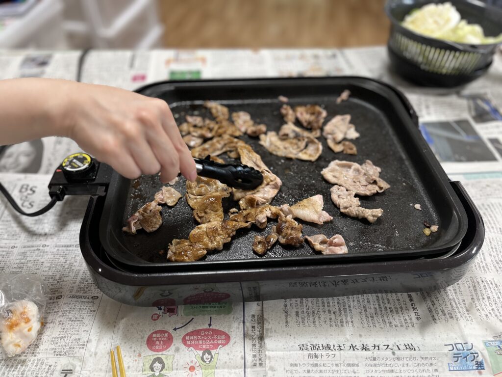 すないの家尾張旭たんぽぽユニットでは、5月6月のお誕生日の入居者様のリクエストにお応えし焼肉パーティーを行いました。牛肉・豚肉・野菜を自分で焼いていただきました。「おいしかったよ!!」「おかわり!!」いい笑顔です。