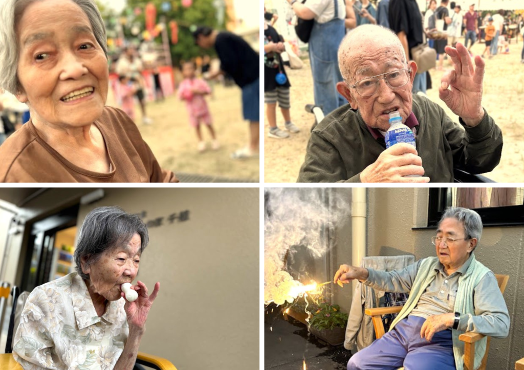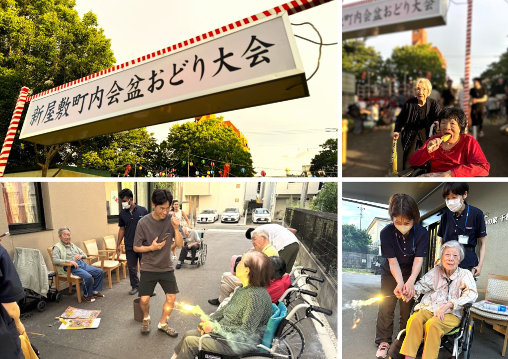 地域の方々と共に櫓を囲み一緒に踊り歌い、さらに、施設では手持ち花火を楽しみ、懐かしい音楽に合わせて踊るひとときと花火の光が、笑顔あふれ心温まる時間となりました。これからも、地域と共に歩む温かな居場所となれるような施設を目指していきたいと思います。