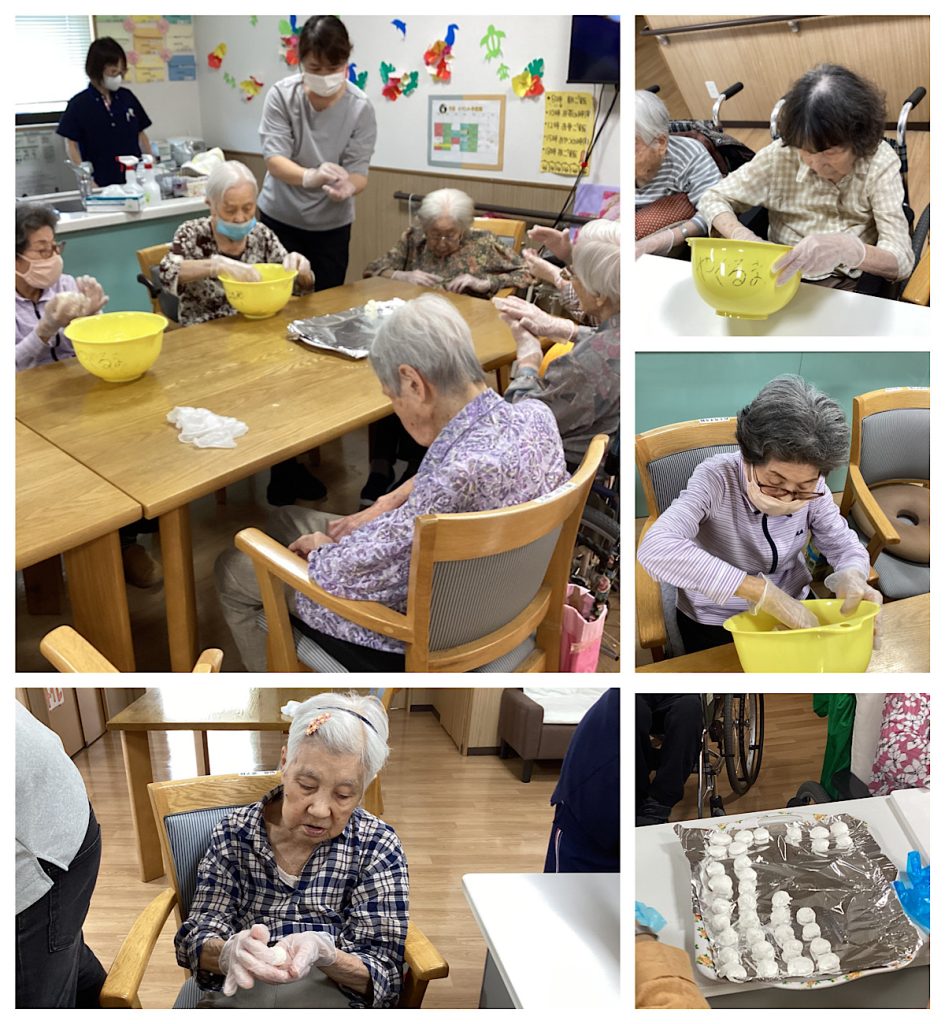 すないの家尾張旭ではお月見団子を作りました。白玉粉を耳たぶくらいの固さまで練ります。