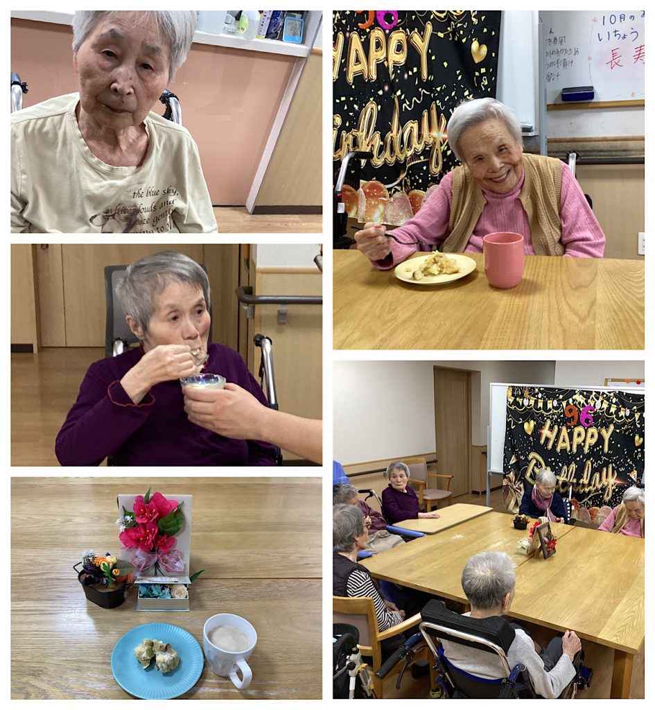 特別養護老人ホームすないの家尾張旭こすもすユニットでは10月生まれの入居者さまのお誕生日会をおこないました。 96才おめでとうございます!!