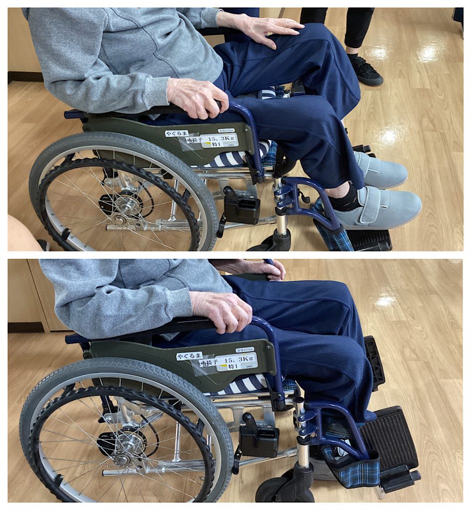 車椅子に座っているときも90度ルールだと教えていただきました。褥瘡を予防するためにスタッフが同じケアができるよう話し合っていきます。