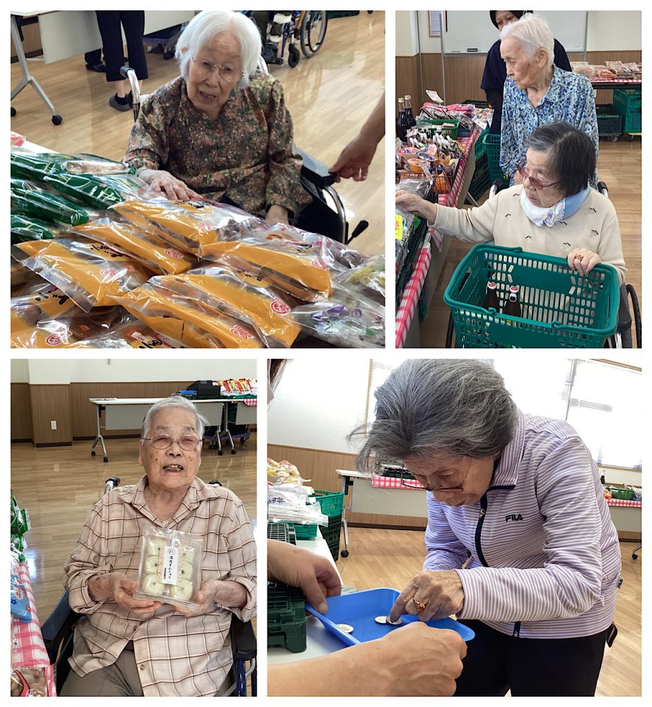 皆さま、おせんべいやお饅頭、佃煮、フルーツなど好みの物を買われていました。来月も楽しみにしています🍊🍘