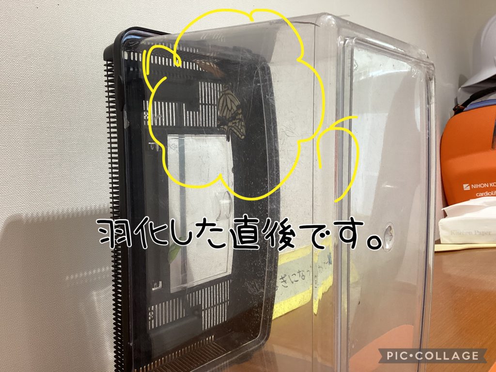 みんなで大事に育ててきたさなぎが羽化して、蝶々になりました🦋