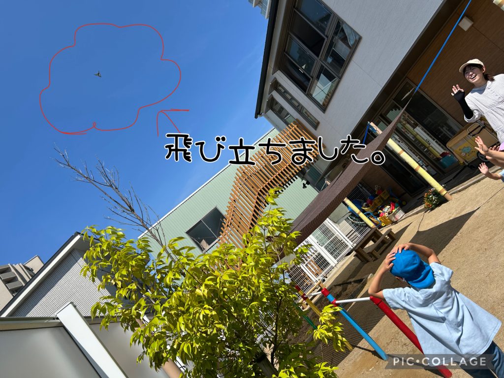 幼児クラスの子どもたちに見守られて、元気よく、空高く飛び立っていきました。