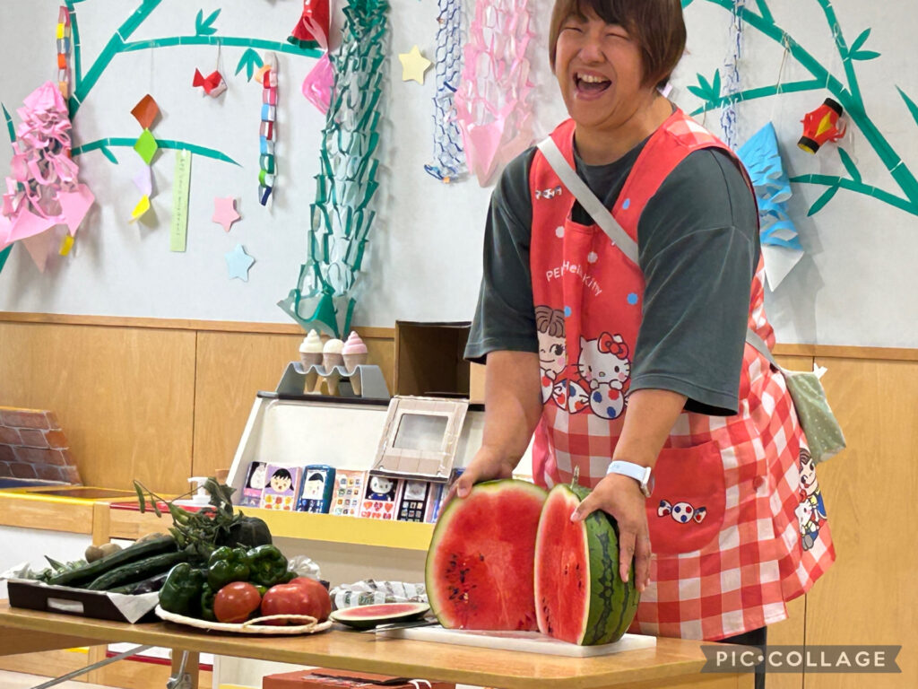 行事の最後には、みんなの前で大きなスイカをパかっとカット🍉