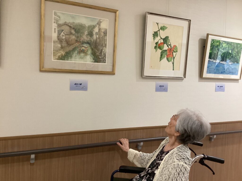 すないの家尾張旭では「一枚の絵の会さま」に作品をエントランスから続く廊下に飾っていただきました。