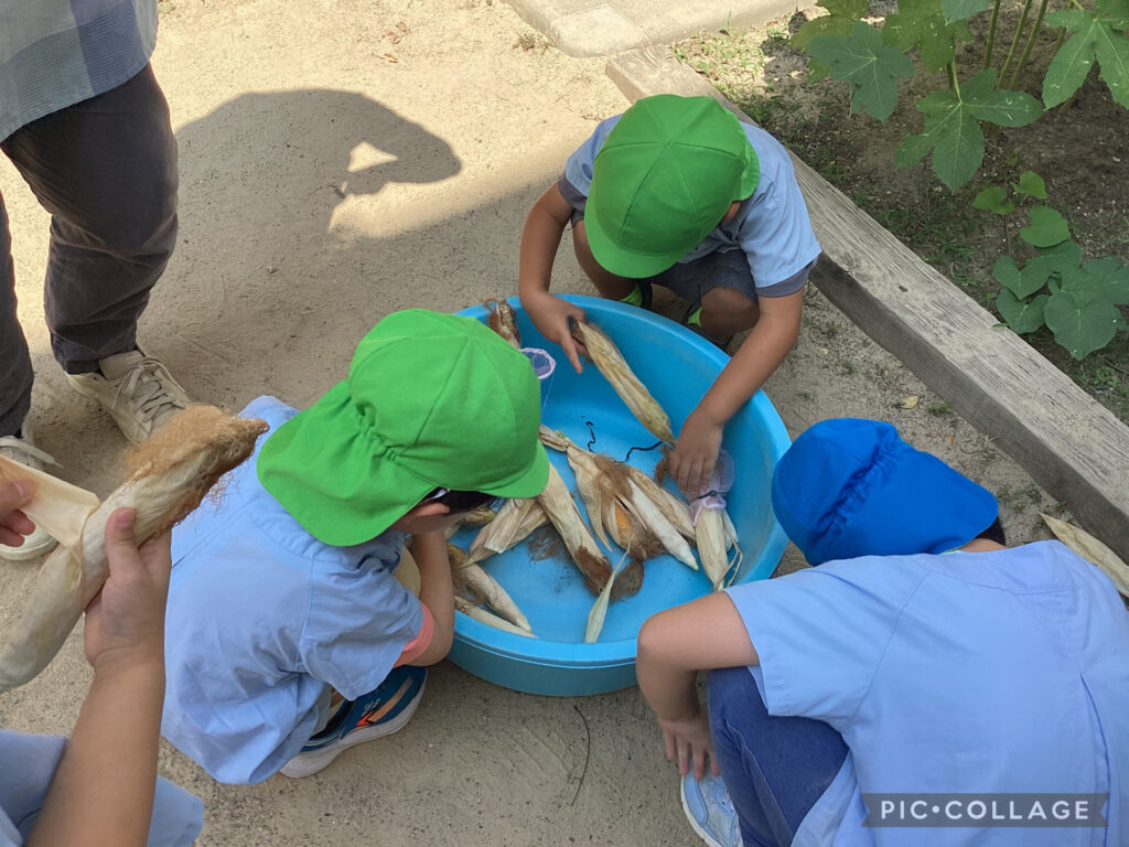 ぐんぐん大きくなるにつれて「これ、とうもろこしだ!」と気づきました😄