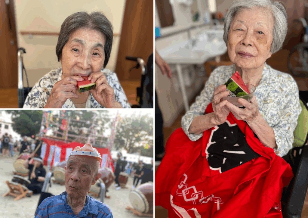 施設でも、スイカや花火で夏を満喫しました。これからも季節を感じながら楽しく過ごしていきたいですね!
