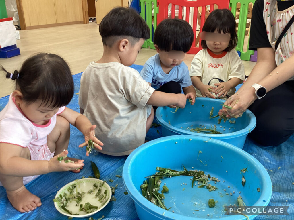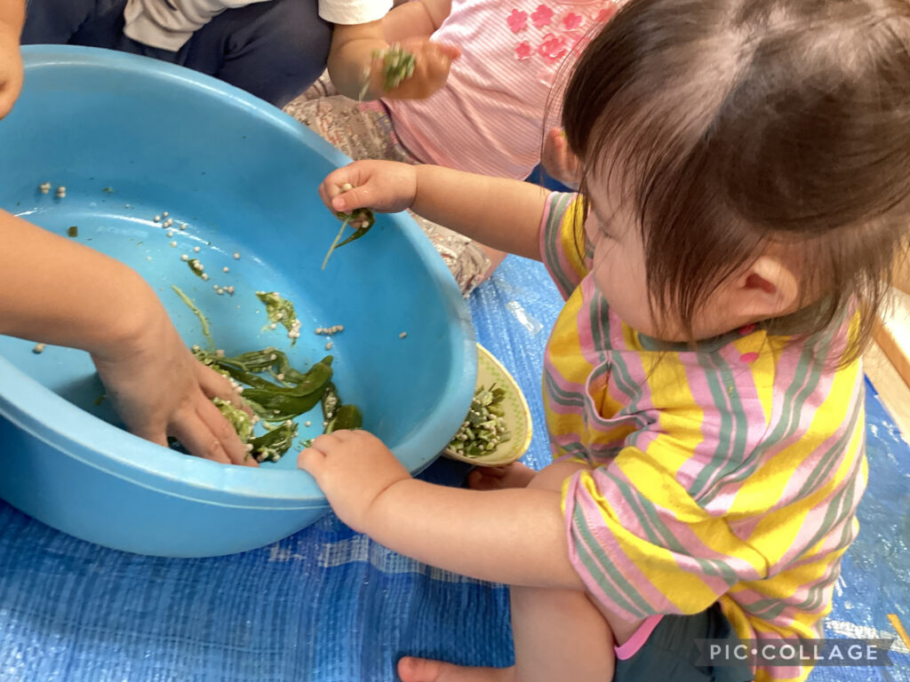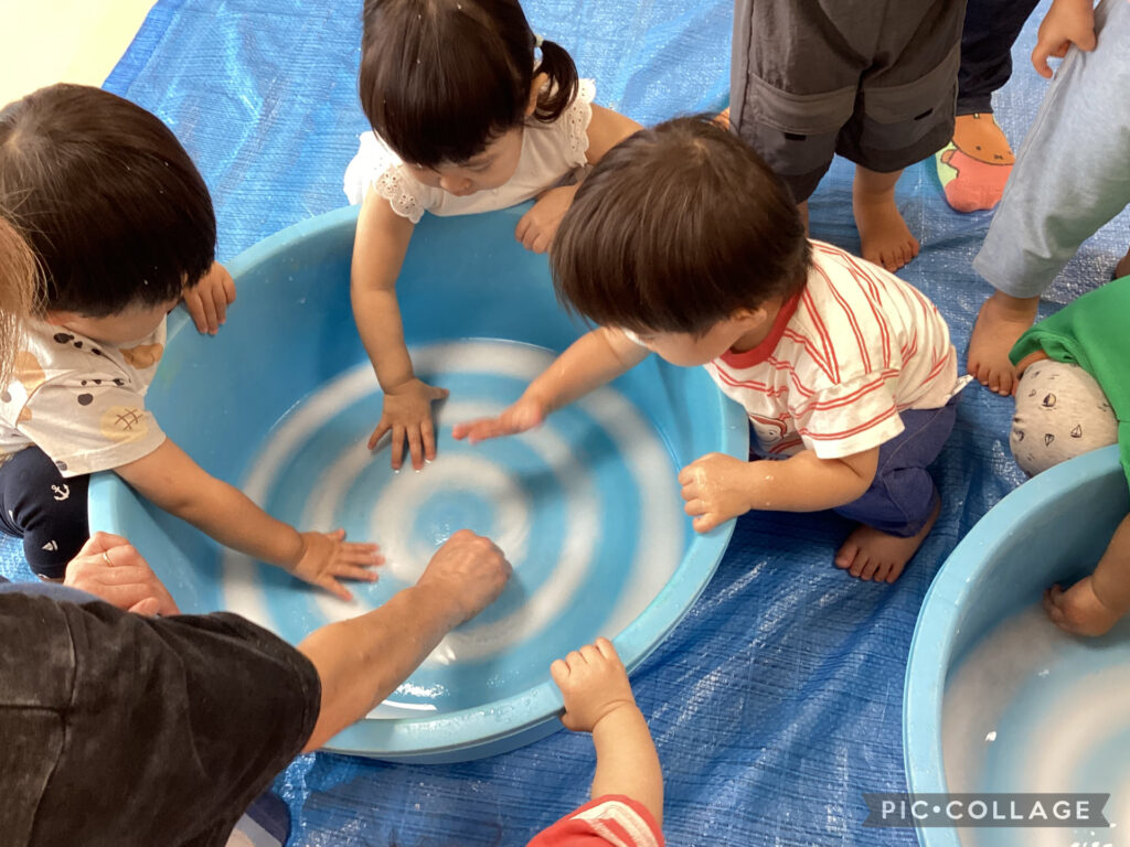 0,1歳児クラスで「感触あそび」を楽しみました😄