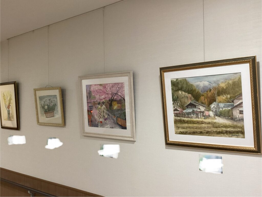すないの家尾張旭では、エントランスから廊下にかけて一枚の絵の会様の絵画を飾らせていただきました。祖父江のイチョウ並木の絵画は、黄色が鮮やかです。