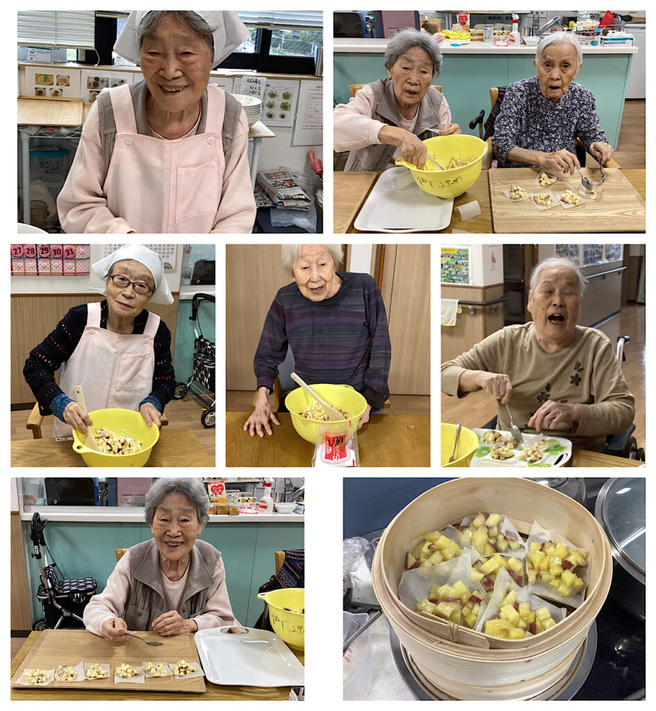 切ったり、混ぜたり、皆さんで協力して作りました。作るって楽しい!!ふっくらした鬼まんじゅうの完成です🍠
