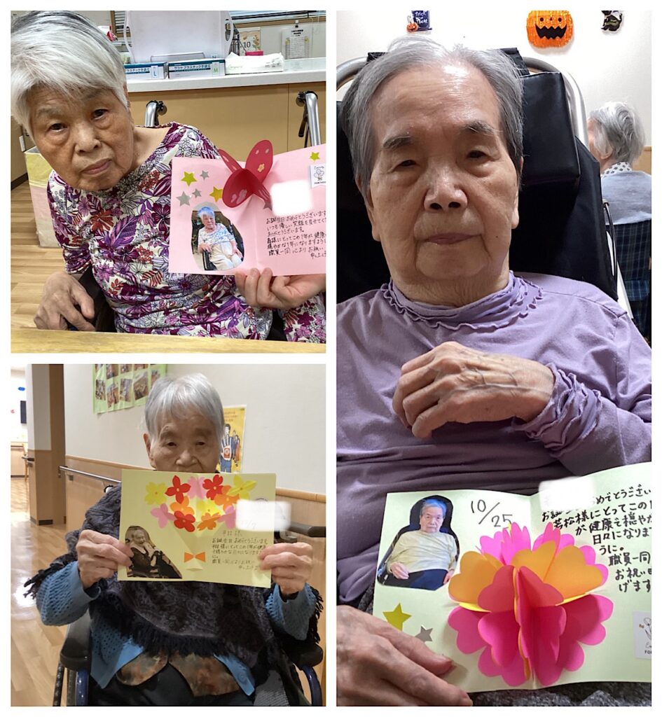 すないの家尾張旭たんぽぽユニットでは10月生まれの方の誕生日会を行いました。スタッフ手作りの誕生日カードをプレゼントさせていただきました。ケーキやお花でかわいいです👏👏