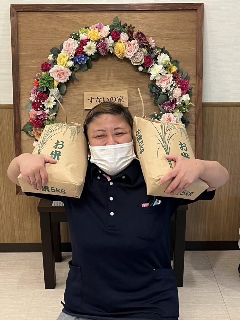 すないの家では、福利厚生としてお米購入支援をスタートしました。5㎏ 2,000円で新潟県産のお米が購入できます。物価高騰の中、うれしい制度と大好評です。