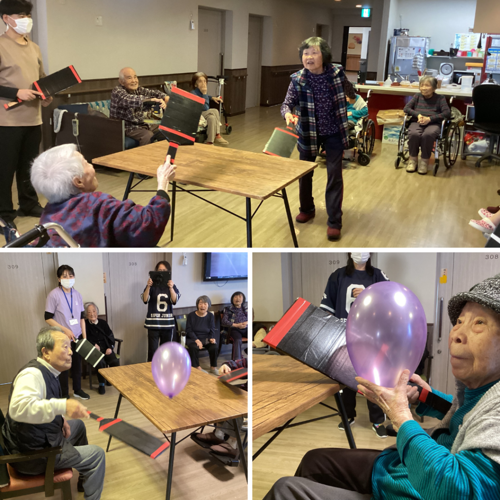 風船バレーでは風船を必死に追って打ち返されており、体を動かす良い運動にもなりました。