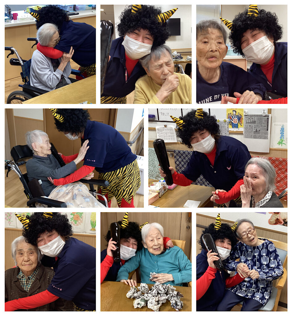 すないの家尾張旭では節分の行事として豆まきを行いました。「鬼は外~!!」「福は内~!!」