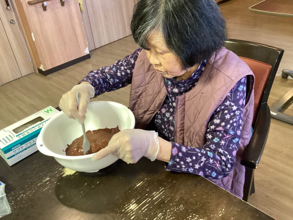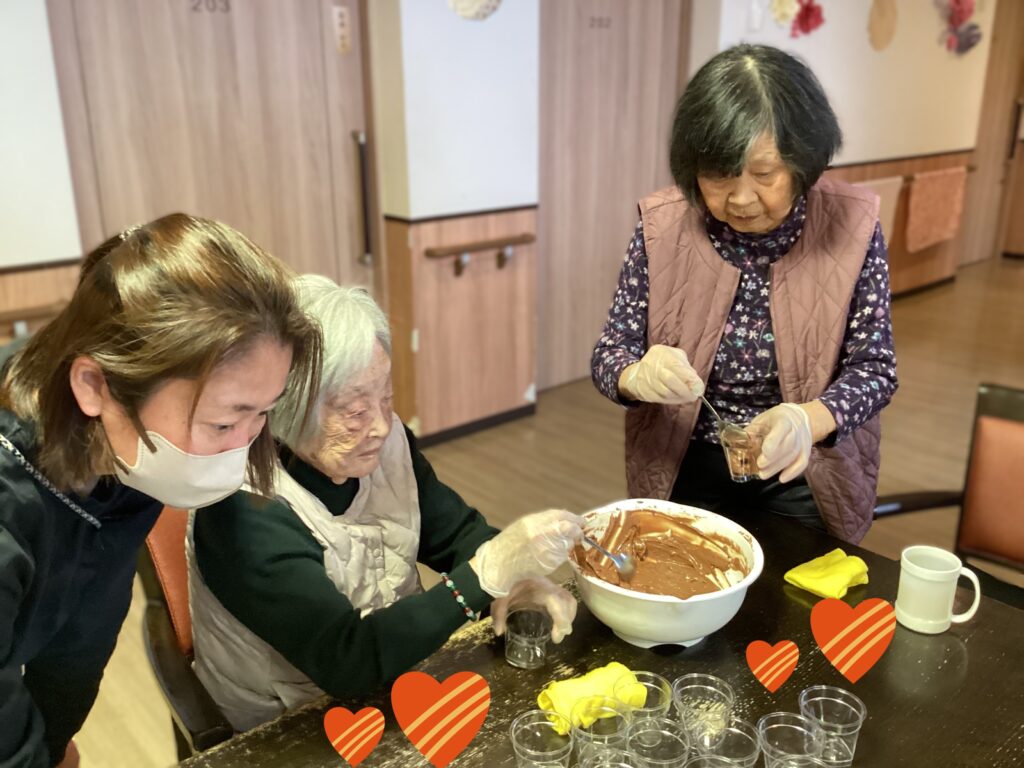 今年は入居者様と一緒にチョコレートプリン作りを楽しみました。