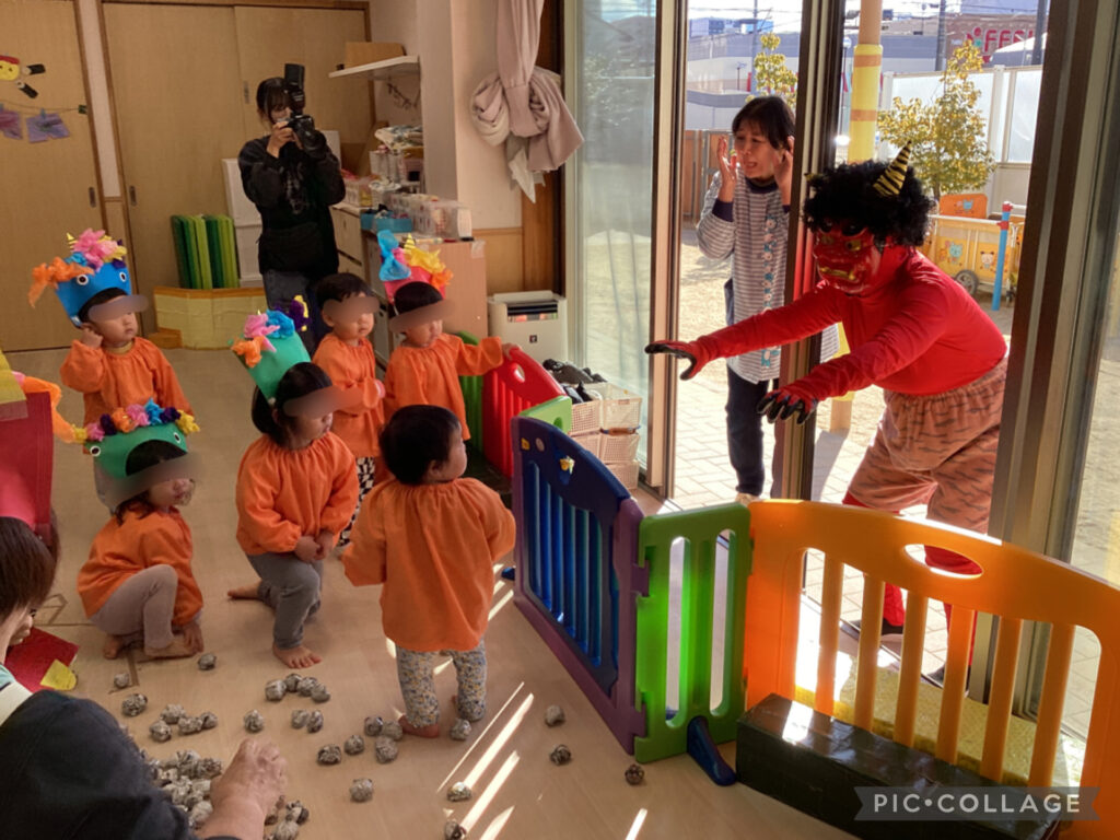 先日、保育園で節分の豆まきを行いました。