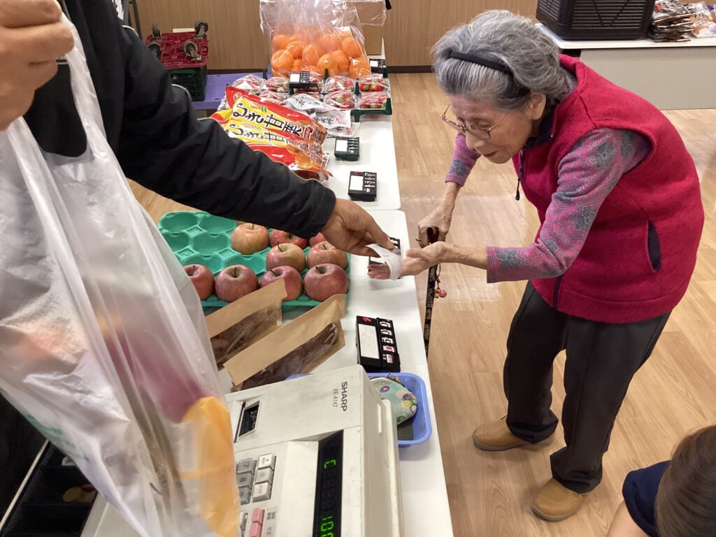自分でお金を払う方もいます。好きな物をカゴに入れていきます。