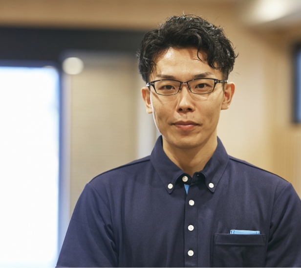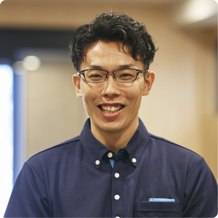 以前働いていた老健では、多い時はフロアに利用者さまが50名くらいいて、スタッフも大人数でいつもバタバタとしていました。特養はやはり終の棲家として「暮らす」という感覚が強く、安心して過ごしていただくための落ち着いた環境が特徴的だなと思います。入居者さまひとりひとりと向き合う時間をしっかりとれることがうれしく、話せば話すほど毎日がよりよい日々であってほしいという思いが強くなります。介護には人と深く接して、直接「ありがとう」と言ってもらえるよろこびがあります。これは大工時代にはなかなか経験できなかったことで、自分にとっては大きなやりがいです。先輩方の指導も丁寧で、実践でしか学べないこと、経験できないことを、ひとつひとつ支えてもらっています。大学で学んでいても、頭でわかっているのと、実際に体や手を動かし介助や声掛けするのとでは違うということを実感します。今所属しているユニットのスローガンは「笑顔」。チームとしていい方向に向かう力があって、私も笑顔を大切にしています。