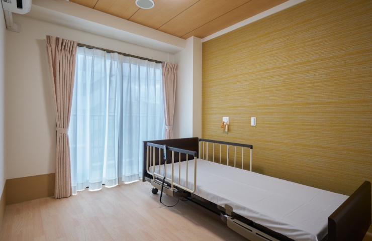使い慣れた家具などをお持ちいただき、自分らしい空間にしていきましょう。大きな窓と木目の壁で明るい居室になっています。