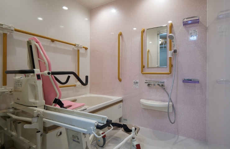 入浴は日々の暮らしの楽しみのひとつ。個浴、リフト浴、寝浴があり、安心して入浴いただける設備や手順を整えています。