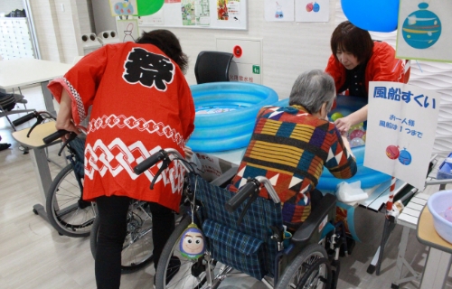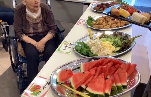 季節ごとのイベントは楽しみにしている入居者さまも多く、スタッフも力が入ります。お正月には近くの神社に初詣に出かけておみくじを引き、夏祭りでは金魚すくい、射的で遊び、かき氷やたこ焼きなども食べながら夏らしい雰囲気を満喫。大きなイベントの時はバイキング形式でにぎやかに食べることが多いです。普段の食事では季節の炊き込みごはんや手づくり餃子が人気です。